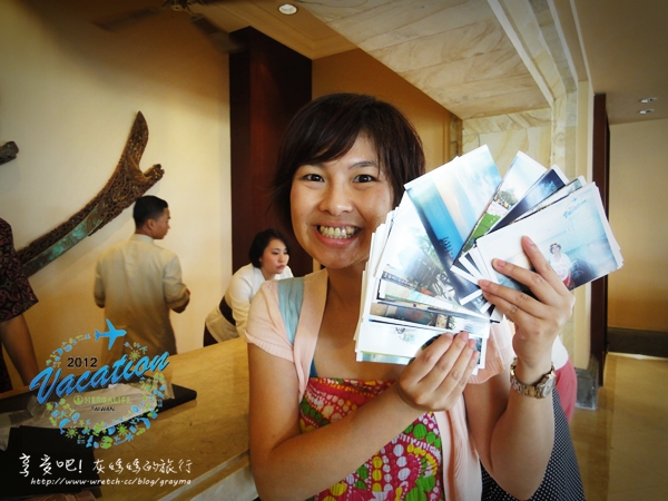 我一直提心吊膽的,因為我分兩批寄,我手上這50張是請AYANA飯店寄的,有開收據(一張郵票要7000塊印尼盾=台幣30塊以內)。另外有23張來不及寫完,還是去機場的途中在遊覽車上、在餐廳裡狂寫,然後給了一些小費請遊覽車開車門的小弟幫我寄。